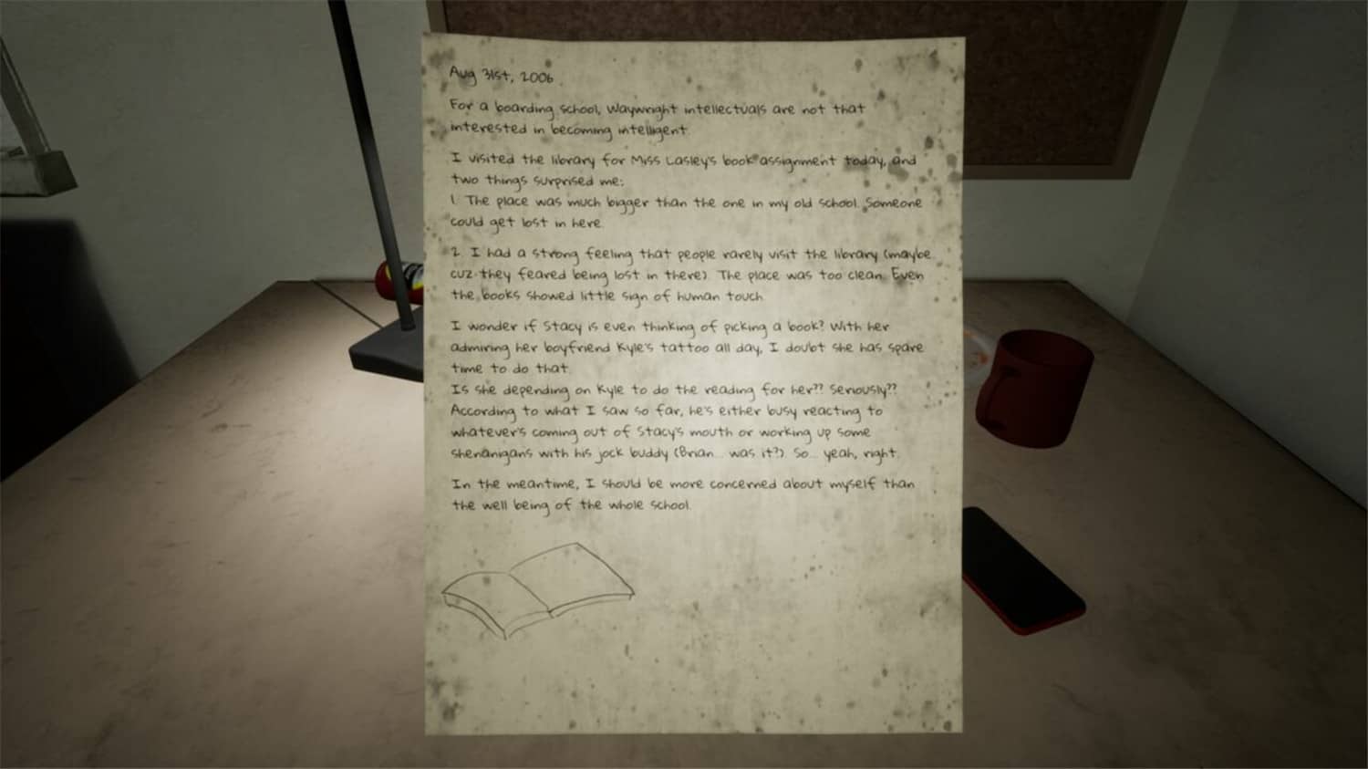 你一个人在房间,发现了你的书桌上有一本日记。日记里面书写着许多回忆,一段高中时期的单恋故事,那是一段在小镇里绽开的浪漫故事,一段所有人都撇弃你,没有人还会爱你的故事。