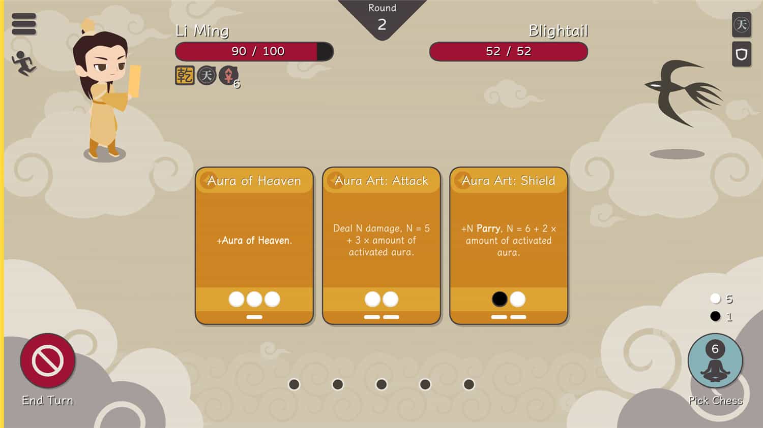 《知天命》是一款单机Rogue卡牌构筑游戏。与其他同类游戏不同的是,你在构筑武学牌组的同时会构筑由黑白子组成的一袋棋子。你需要在回合中抽取黑白子,并使用特定顺序的黑白子来释放武学技能。构建武学套路、搭配黑白比例、击败敌人,这一轮回的你又能否进入万众瞩目的天命榜呢?